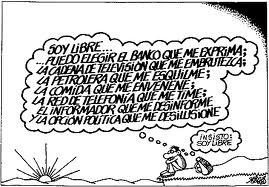 Somos libres de hacer lo que nos venga en gana con nuestra vida, eso sí, para cada paso que quieres dar surgen mil y un peros, formularios que cumplimentar, instancias que presentar, registros que pasar, escáneres que soportar … para cuando superas todas las trabas y trámites ya no sabes qué ibas a hacer ni para qué; ejemplos hay muchos, desde intentar montar una empresa hasta un simple viaje en avión. Y no me malinterpreteis … reitero que defiendo que mi libertad termina donde empieza la de mi vecino y claro que debe haber controles, impuestos y servicios sociales … pero cuando todo eso rumia la libertad individual hasta el punto de que tienes la sensación de tenerla pero no poder ejercerla … mal asunto.