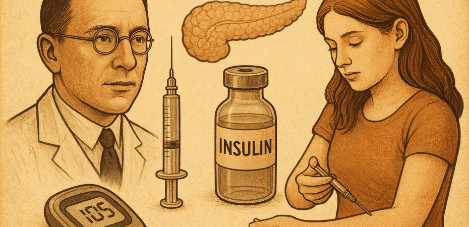 Hace poco más de un siglo no es que los diabéticos tipo 1 fueran mal, es que no iban, desde que la enfermedad comenzaba a evolucionar era solo cuestión de tiempo que su vida tocara a su fin, sin insulina no se puede vivir por mucha actividad física que se haga y por pocos, o ningún, hidrato que se coma (de hecho en ensayos clínicos de principios del siglo pasado se logró alargar un poco la vida de algún DT 1 pero casi matándolo de hambre); no son pocos los investigadores a los que les debemos pasar de aquella sentencia de muerte al ‘no vamos mal’ que dice mi hijo hoy y los primeros a los que hay que recordar es a los que aislaron y depuraron la insulina para que pudiera utilizarse en humanos: fueron los que titulan este artículo: Frederick Banting, un cirujano canadiense que fue el primero en aislar la insulina en el páncreas de un perro, su asistente Charles Best, John Macleod, que fue quien puso en marcha el laboratorio de Banting y supervisó además su investigación y James Collip, que mejoró la pureza de aquella primera insulina para hacerla más segura para su uso en humanos.
